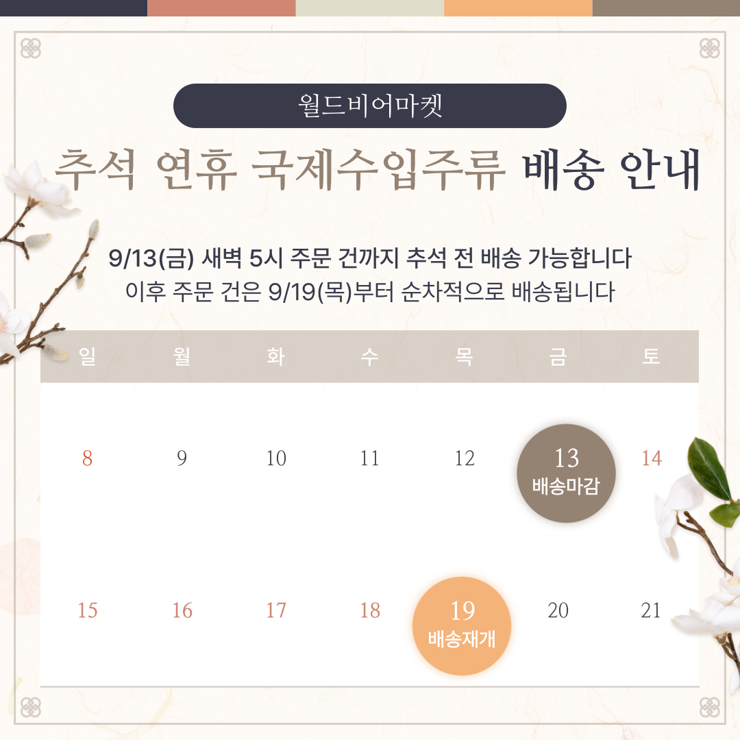 9월 국제 도매장 추석 휴무일 안내